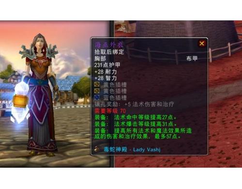魔兽世界国际服燃烧的远征(阳炎之袍)属性:42 智力38 耐力法术伤害 70暴击 32还有急速加成