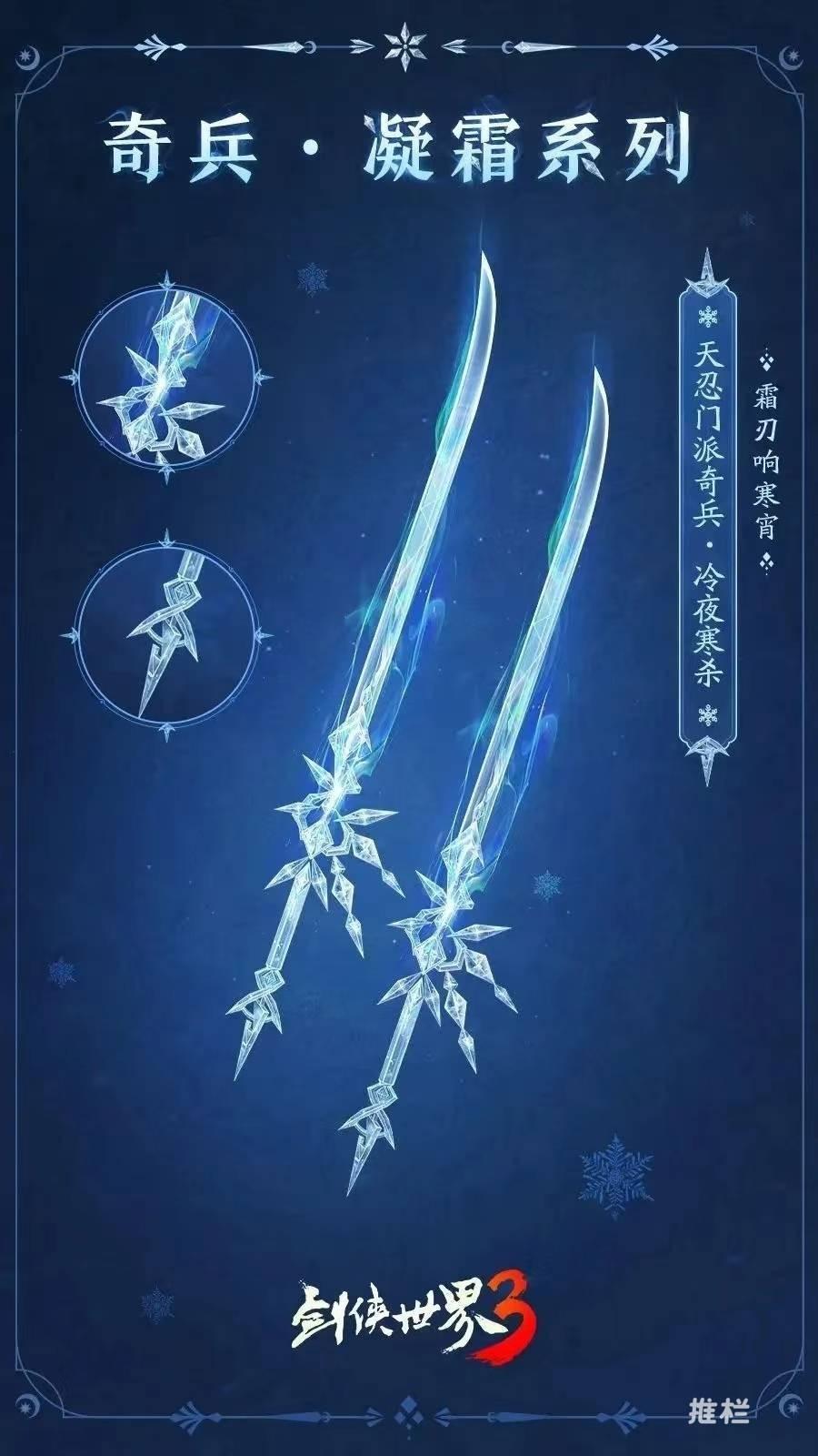 剑侠世界3(奇兵凝霜系列)属性:内功增加350灵巧增加130冰系伤害增加18