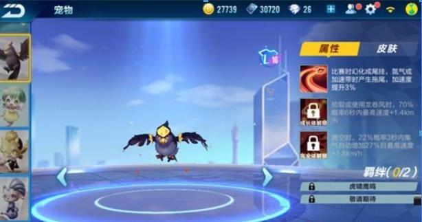 QQ飞车手游(宠物)属性:技能加速度 122 技能被酷比攻击时 28 概率获得加速
