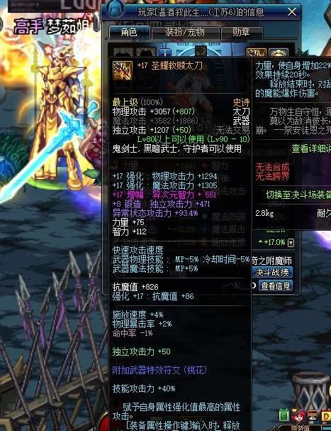 地下城勇气(夜语黑瞳太刀)属性:技能攻击力增加40附加属性强化伤害...¥55